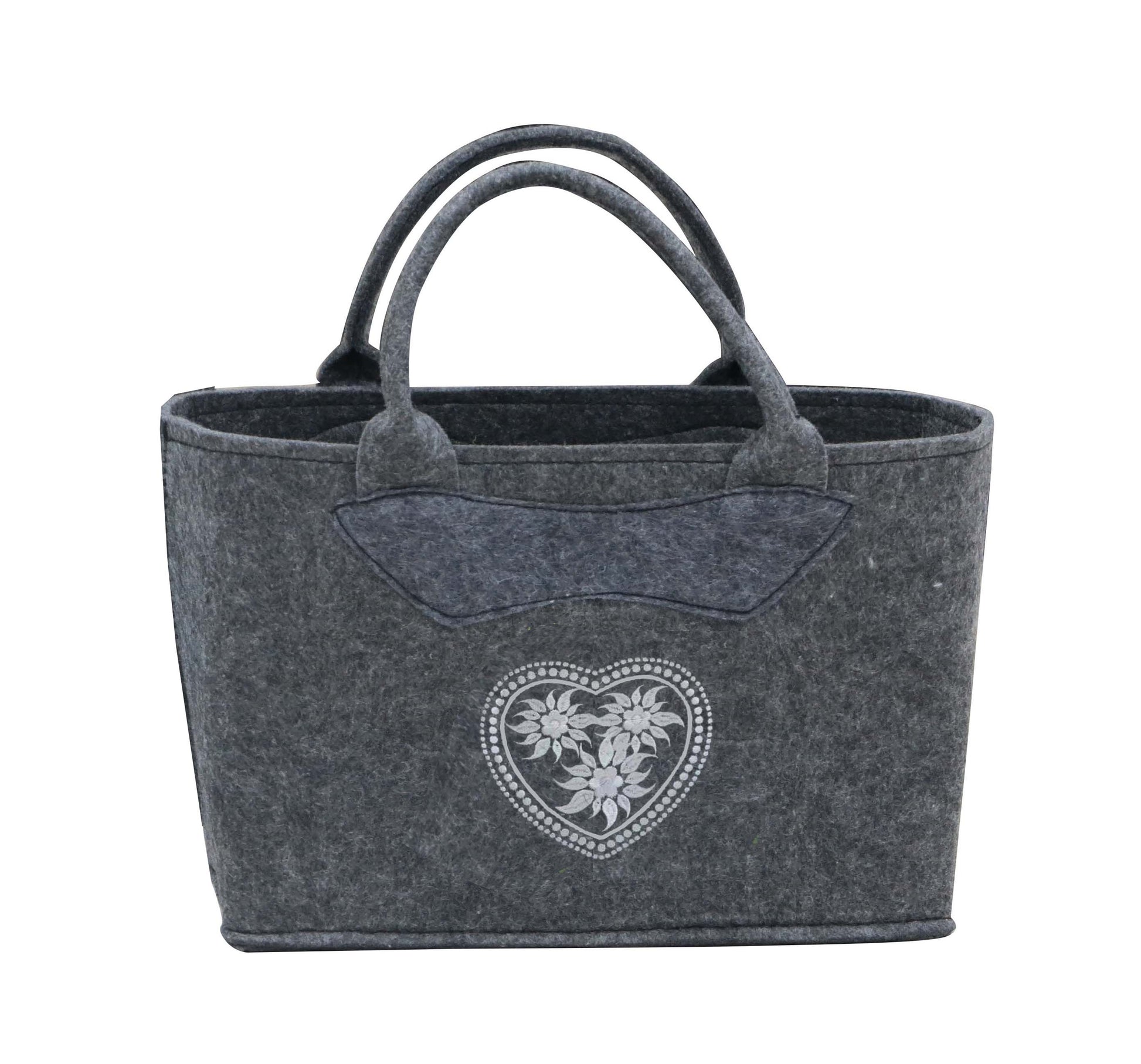 3557-55-56HE FILZTASCHE UNI DUNKELGRAU HERZ SILBERGRAU GESTICKT