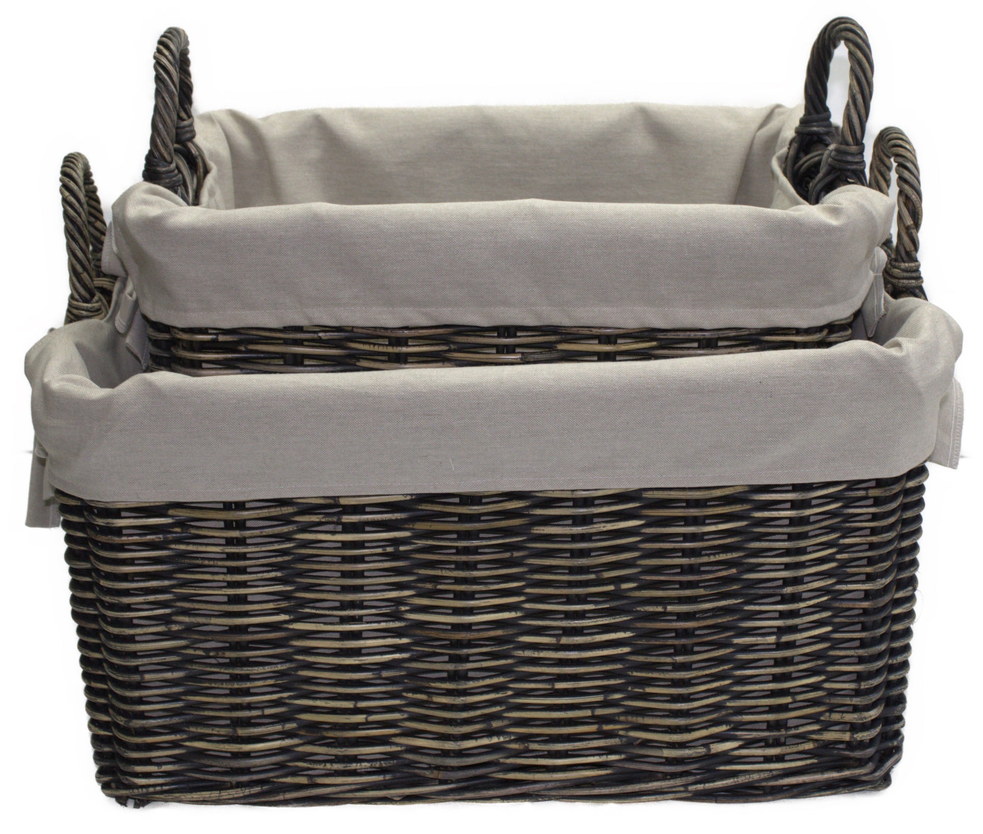 3564-55-1 HOLZKORB SATZ 1-2 AUS PEDDIGROHR SCHWARZ GEWASCHEN MIT FUTTER