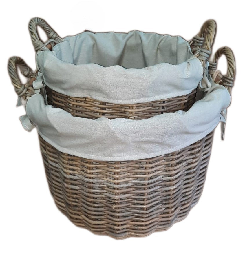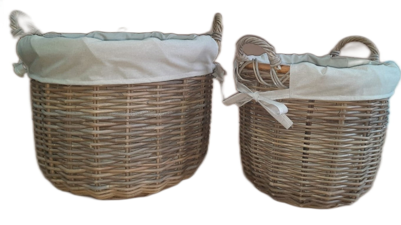 3565-56-1 HOLZKORB SATZ 1-2 RUND AUS PEDDIGROHR GRAU MIT FUTTER