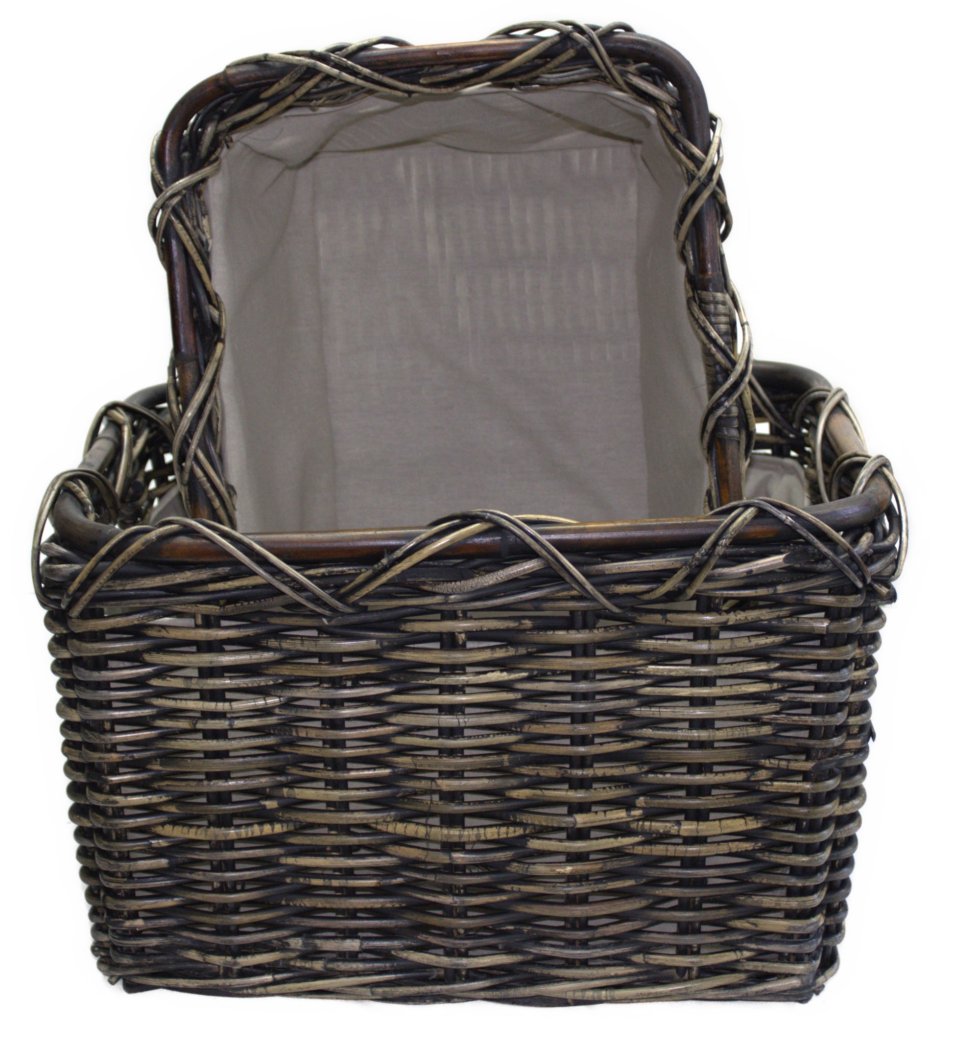 3567-55-1 HOLZKORB SATZ 1-2 AUS PEDDIGROHR SCHWARZ GEWASCHEN MIT FUTTER