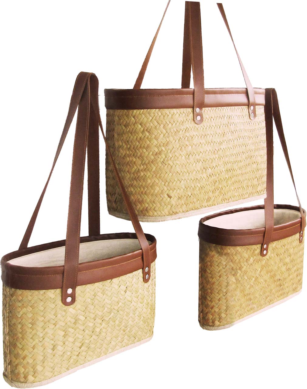 3943-20-1 SATZ PALMBLATTTASCHE MIT KUNSTLEDERHENKEL 1-3 MIT STOFFZUG