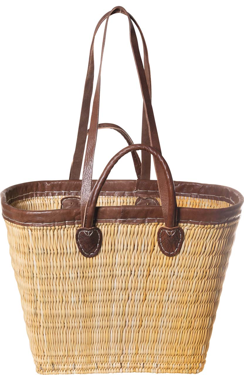 Die Tasche wird in Handarbeit gefertigt – ein Produkt aus fairem Handel mit echtem Leder an den Griffen, das auch bei Belastung angenehm in der Hand liegt. Robust, leicht und ein natürlicher Blickfang für jede Gelegenheit.