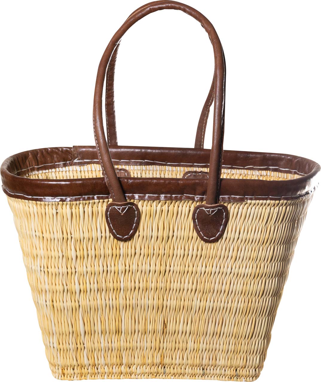 Die Tasche wird in Handarbeit gefertigt – ein Produkt aus fairem Handel mit echtem Leder an den Griffen, das auch bei Belastung angenehm in der Hand liegt. Robust, leicht und ein natürlicher Blickfang für jede Gelegenheit.