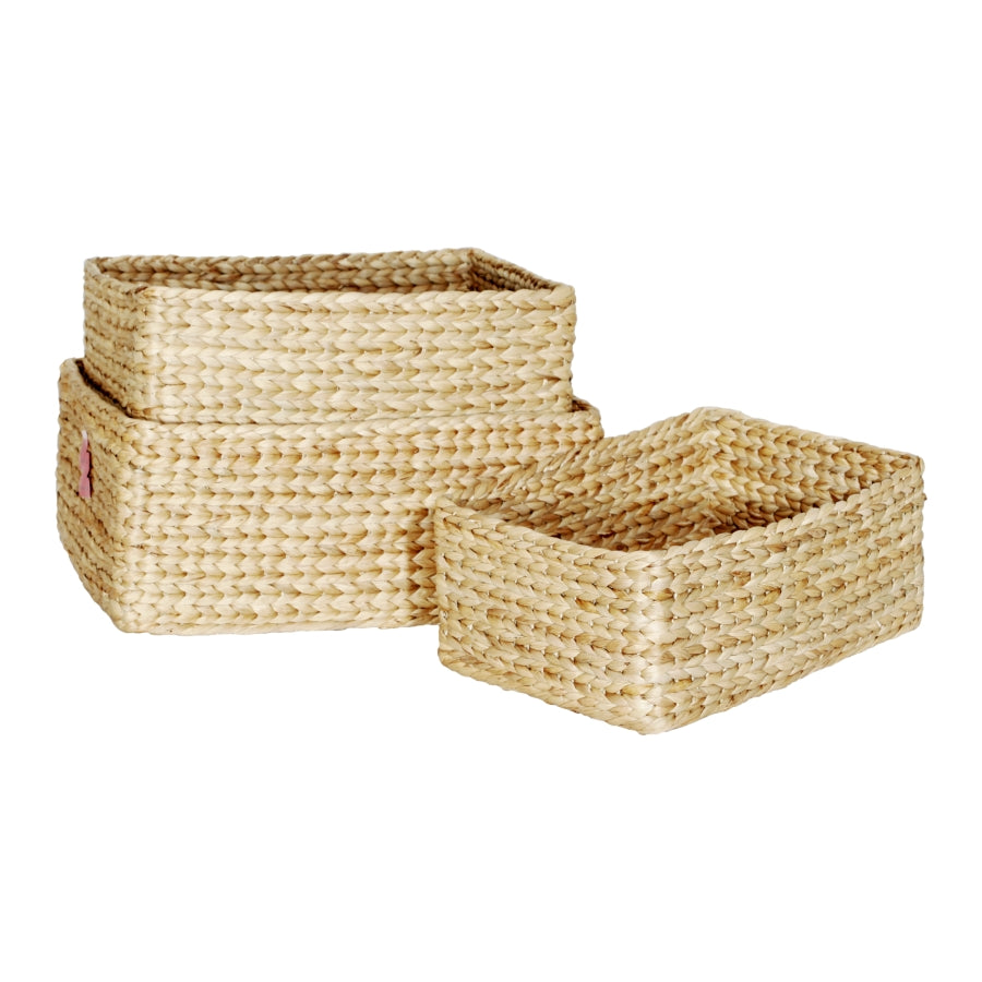 In traditioneller Handarbeit gefertigt: Diese naturbelassenen Körbe aus Wasserhyazinthe überzeugen mit einem dekorativen Zopfmuster.