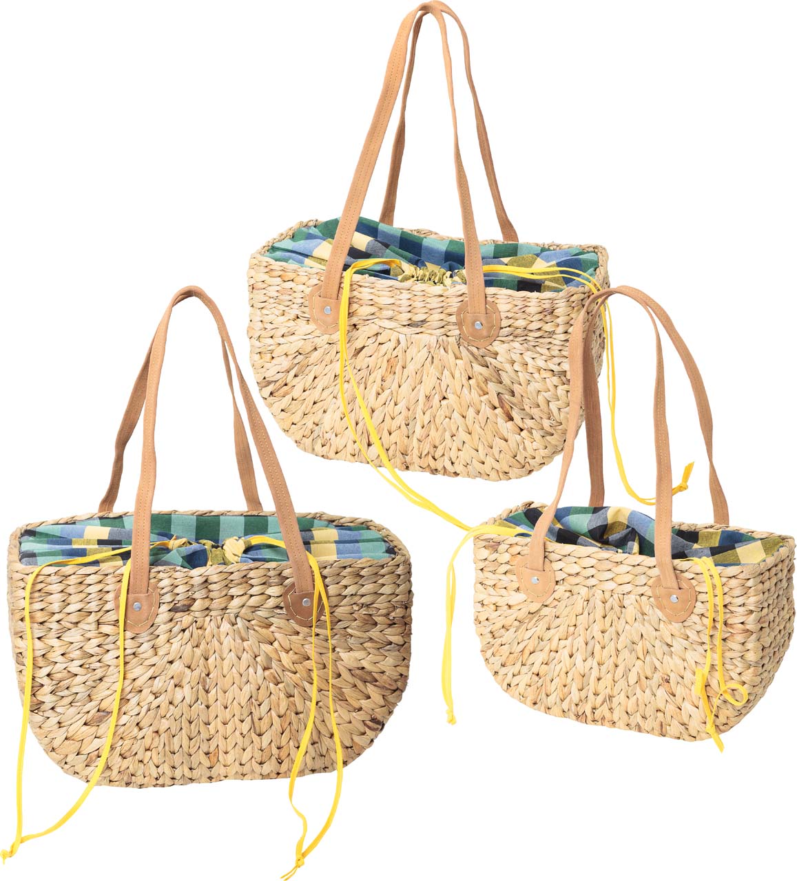 4087-20-2 KORBTASCHE AUS WASSERHYAZINTHE NATUR SATZ 1-3 MIT STOFFZUG