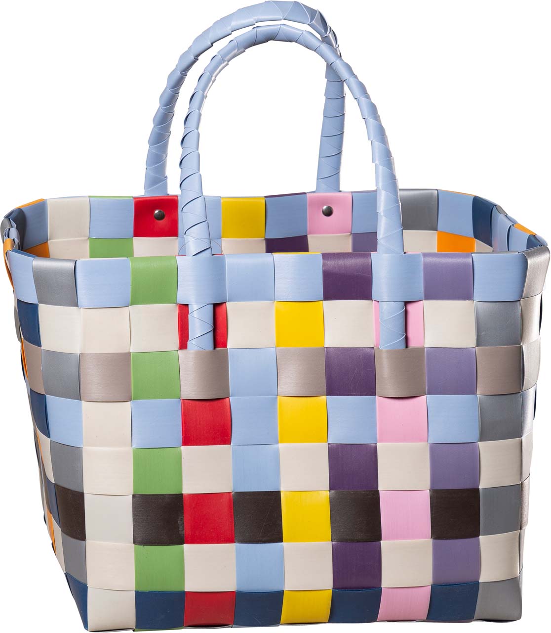 Alle ICE-BAG Shopper werden in Handarbeit aus robusten Kunststoffbändern geflochten, hauptsächlich aus Recycling-Kunststoff (100% PE, hoher Recycling-Anteil, ohne Weichmacher).