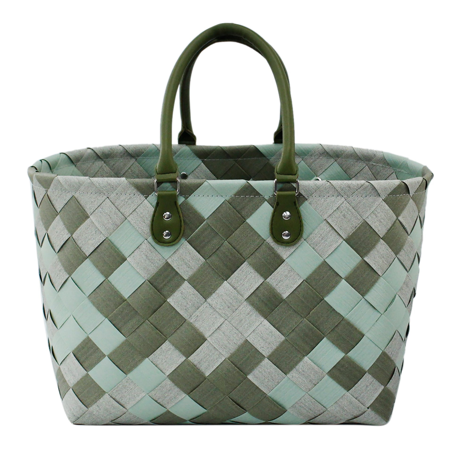 Die ICE-BAG BEACH BAG 5600 ist der ideale Begleiter für alle, die stilvoll und praktisch zugleich unterwegs sein möchten. Sie überzeugt durch ihr leichtes Gewicht und die robusten PU-Ledergriffe, die für zusätzlichen Komfort sorgen. Die Tasche ist aus recyceltem Kunststoff gefertigt und zeichnet sich durch eine hervorragende Verarbeitung aus. Mit der diagonal geflochtenen Struktur ist sie nicht nur strapazierfähig, sondern auch ein echter Hingucker.