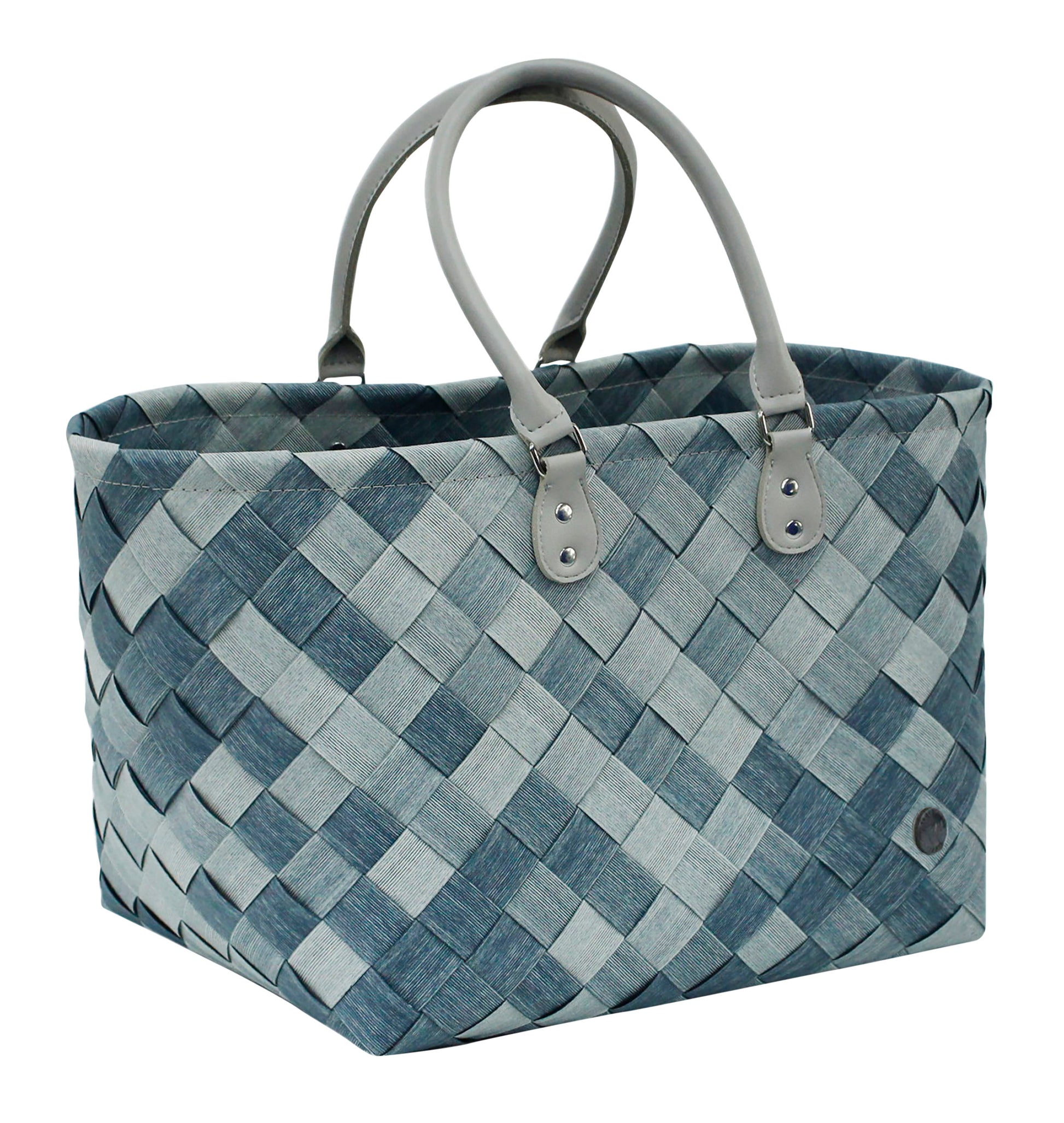 Alle ICE-BAG Shopper werden in Handarbeit aus robusten Kunststoffbändern geflochten, hauptsächlich aus Recycling-Kunststoff (100% PE, hoher Recycling-Anteil, ohne Weichmacher).