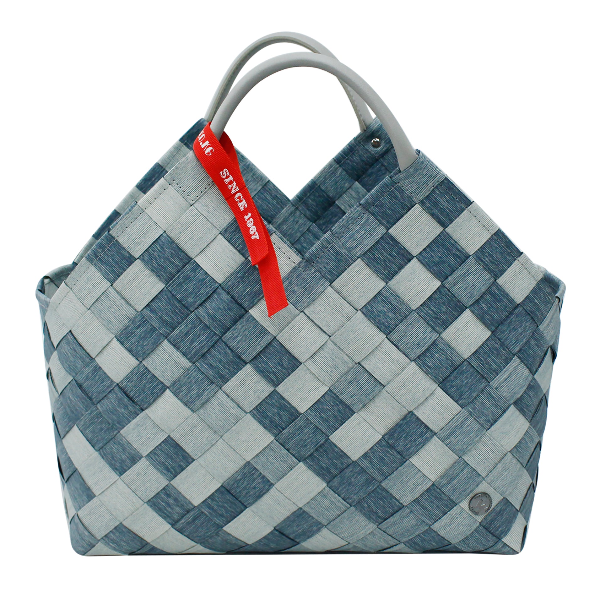 Alle ICE-BAG Shopper werden in Handarbeit aus robusten Kunststoffbändern geflochten, hauptsächlich aus Recycling-Kunststoff (100% PE, hoher Recycling-Anteil, ohne Weichmacher).