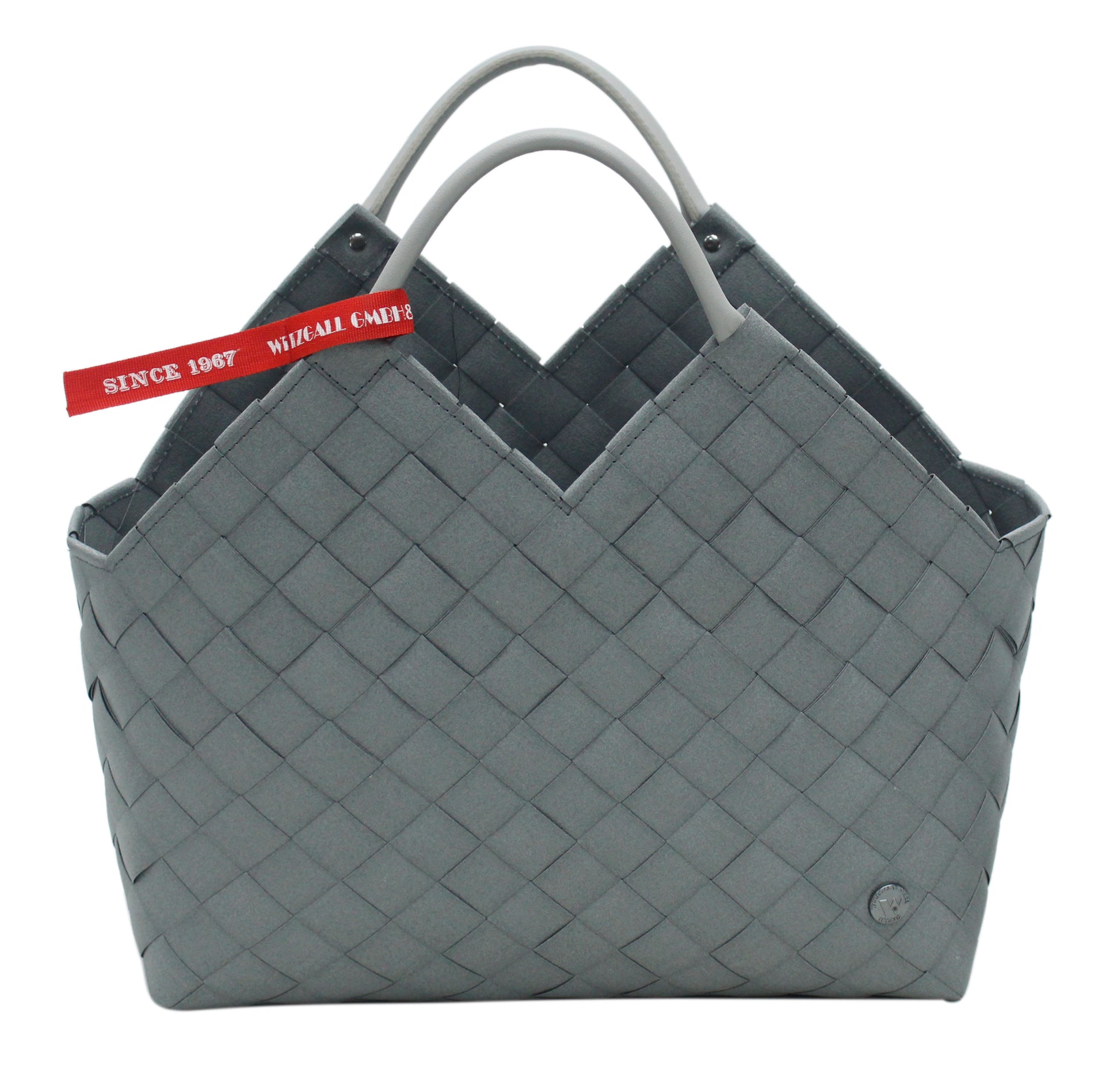 Alle ICE-BAG Shopper werden in Handarbeit aus robusten Kunststoffbändern geflochten, hauptsächlich aus Recycling-Kunststoff (100% PE, hoher Recycling-Anteil, ohne Weichmacher).