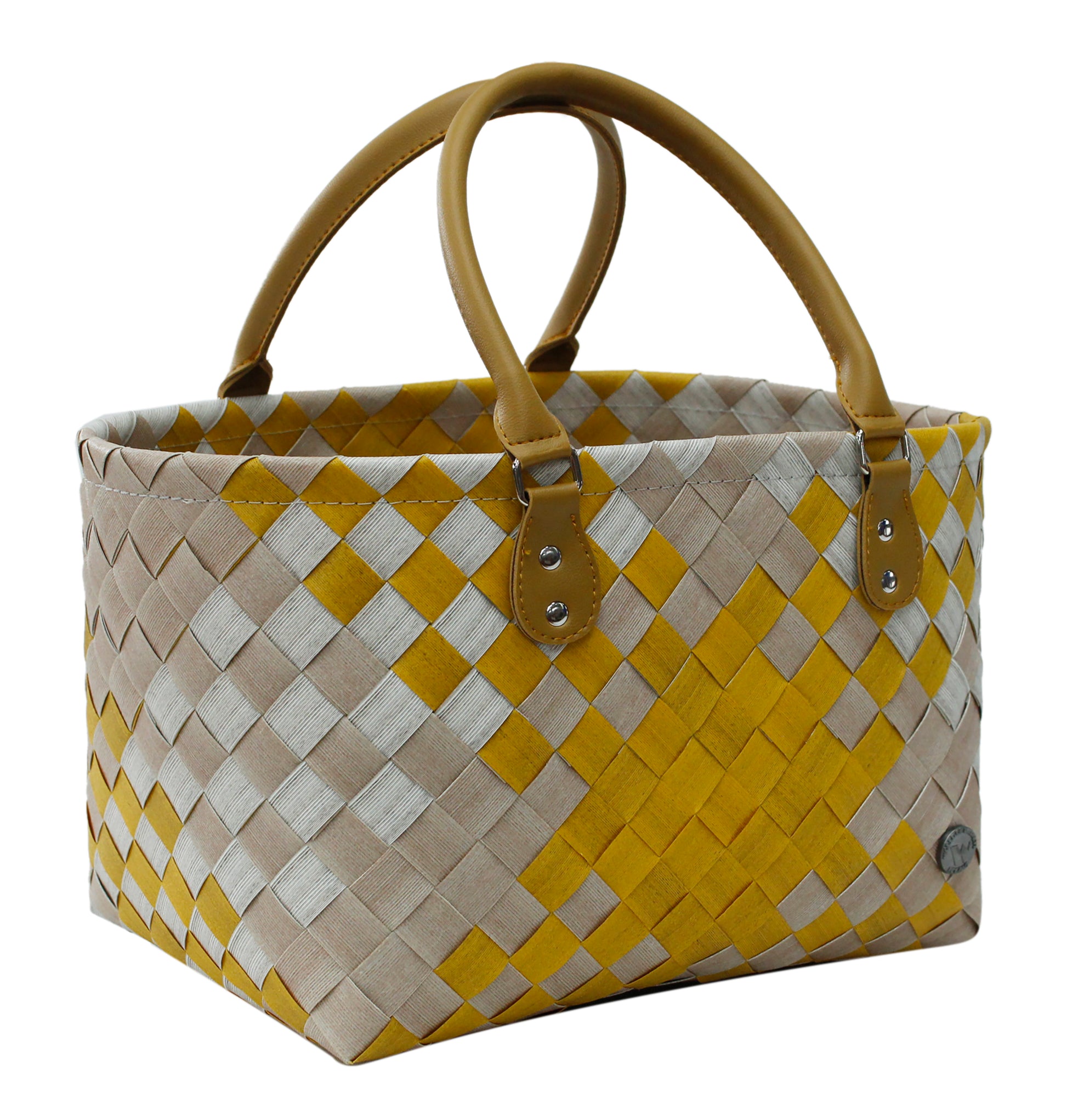 Alle ICE-BAG Shopper werden in Handarbeit aus robusten Kunststoffbändern geflochten, hauptsächlich aus Recycling-Kunststoff (100% PE, hoher Recycling-Anteil, ohne Weichmacher)