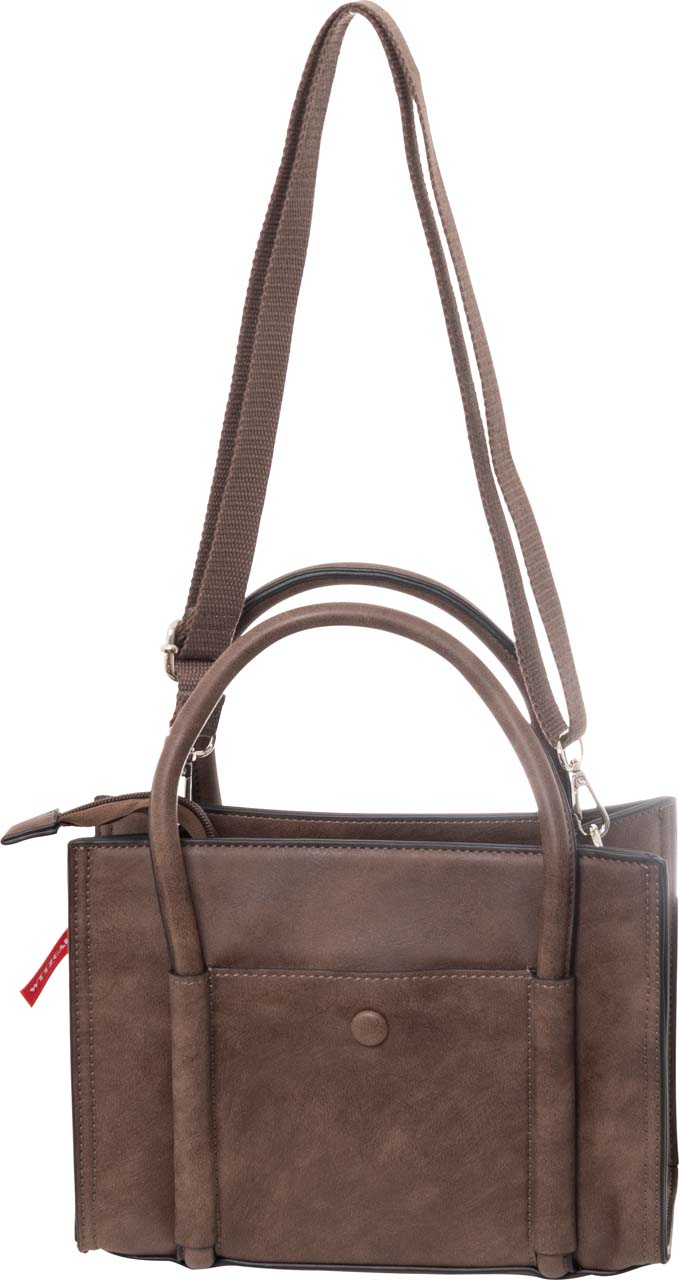 Ein längenverstellbarer und abnehmbarer Schultergurt sowie zwei kurze, nicht abnehmbare Griffe (ca. 10 cm hoch) machen sie flexibel tragbar – als klassische Handtasche oder bequem über der Schulter.