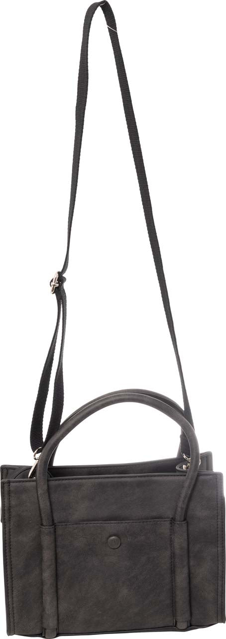Ein längenverstellbarer und abnehmbarer Schultergurt sowie zwei kurze, nicht abnehmbare Griffe (ca. 10 cm hoch) machen sie flexibel tragbar – als klassische Handtasche oder bequem über der Schulter.