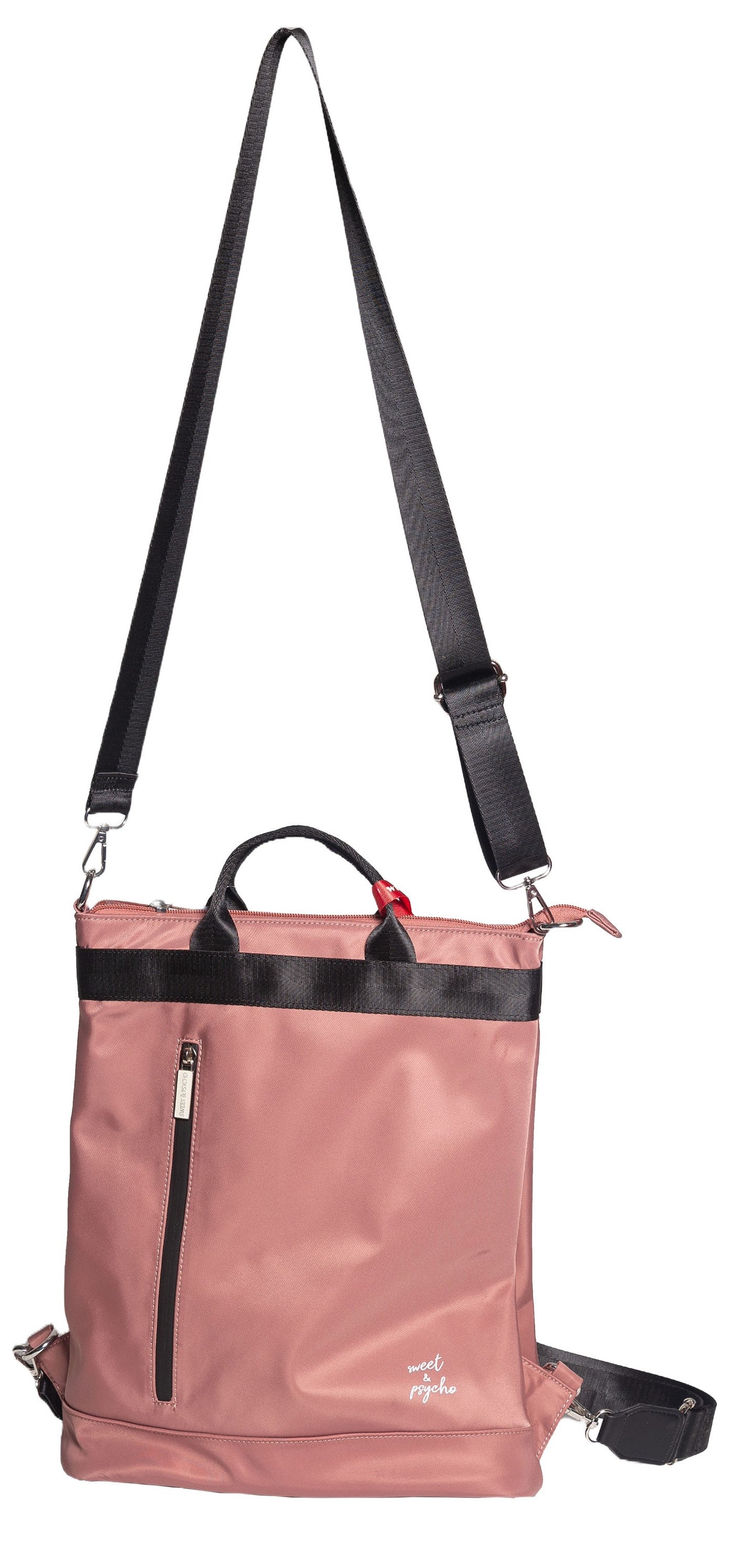 Unser SWEET & PSYCHO „TROIS“ Rucksack überzeugt mit einem wasserabweisenden, leichten Nylon-Gewebe. Abnehmbar durch One-Klick-Karabiner: Die Schultergurte mit einstellbarer Länge lassen sich abnehmen. Zusätzlich gibt es noch einen Schulterriemen. Kurze Griffe…damit wird unser Rucksack zur Tasche. Die Sweet & Psycho Tasche können Sie ganz bequem über der Schulter tragen.