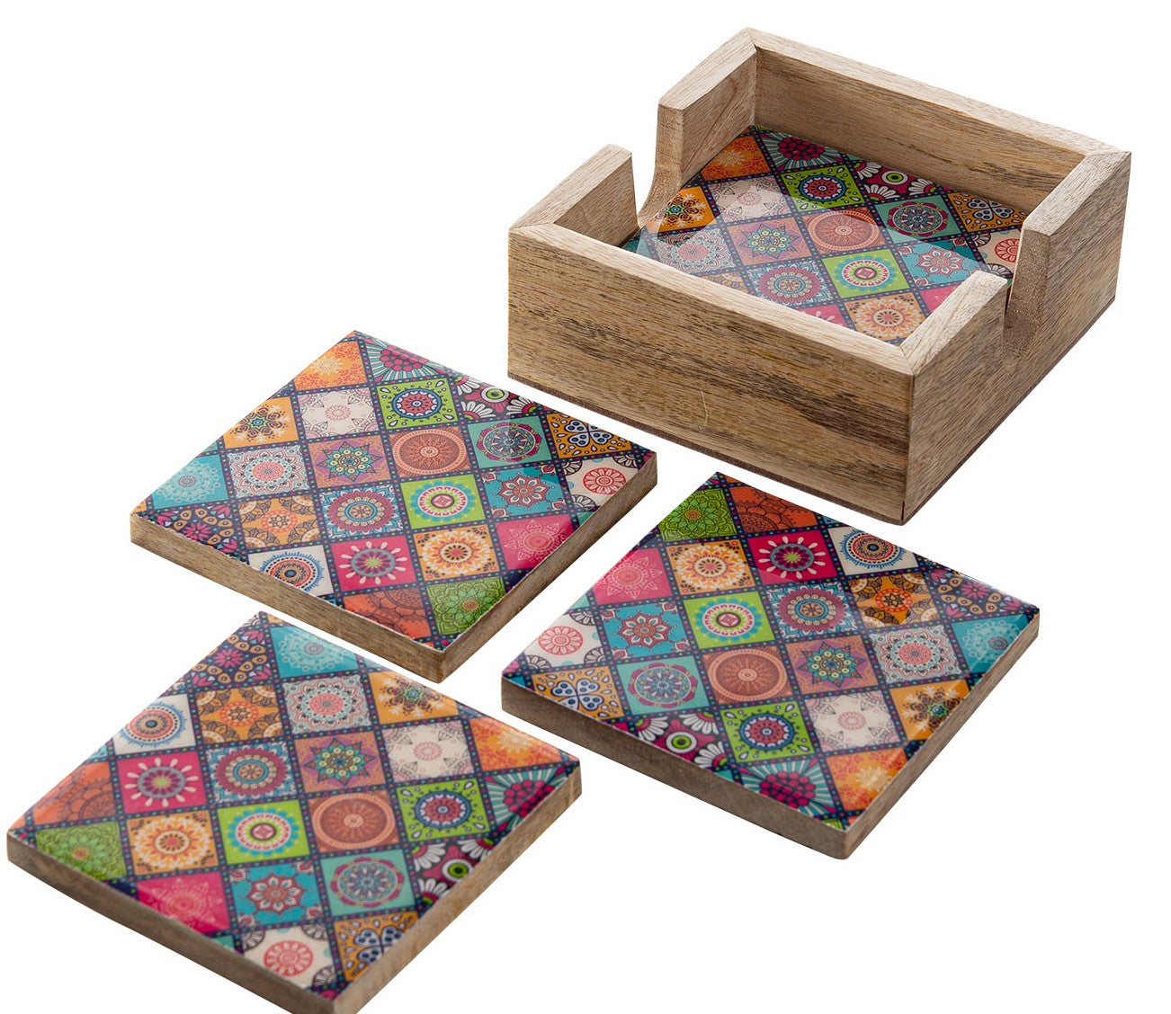 8021-01-0 VIER UNTERSETZER FÜR GLÄSER viereckig MIT MOTIV