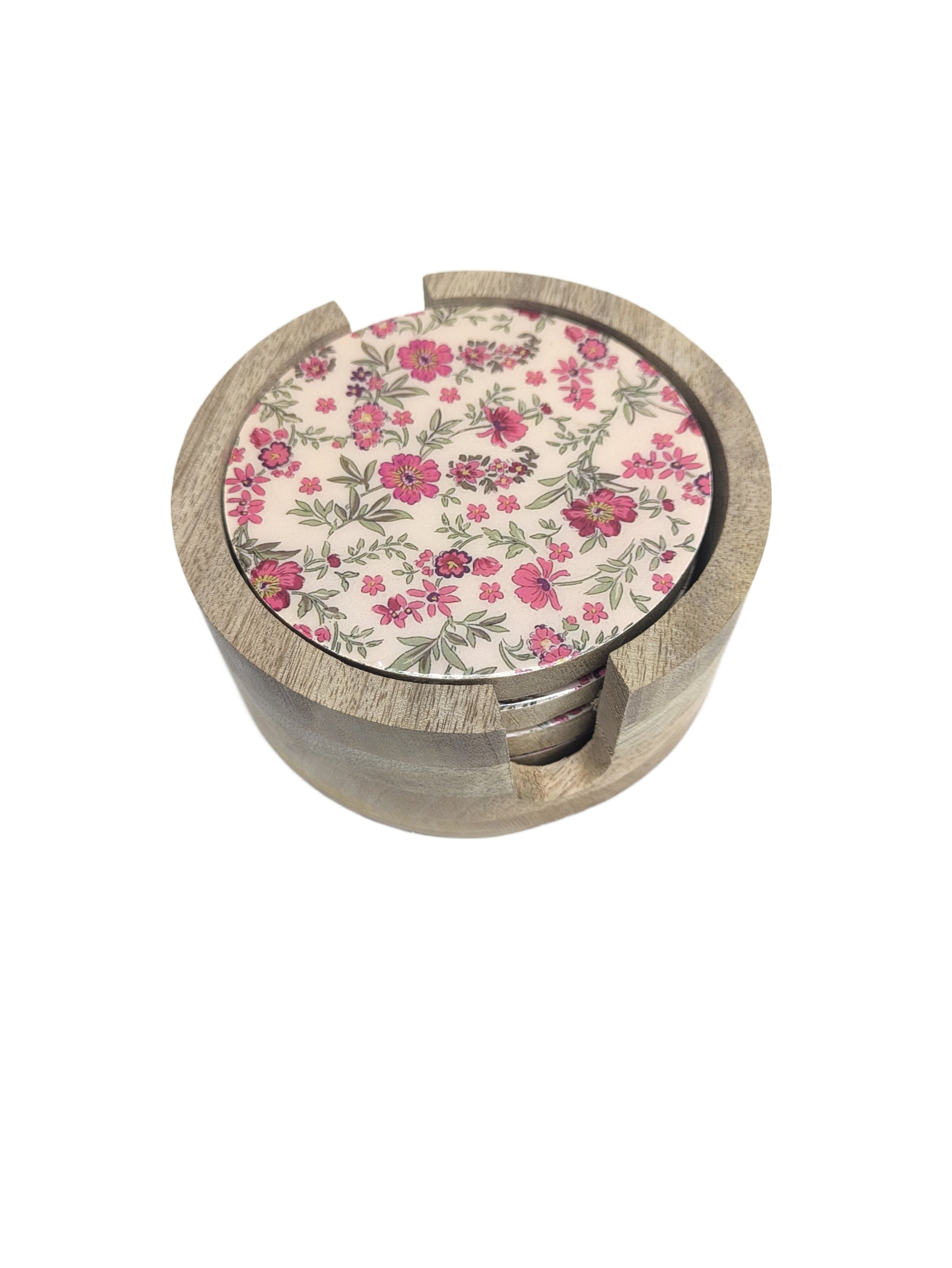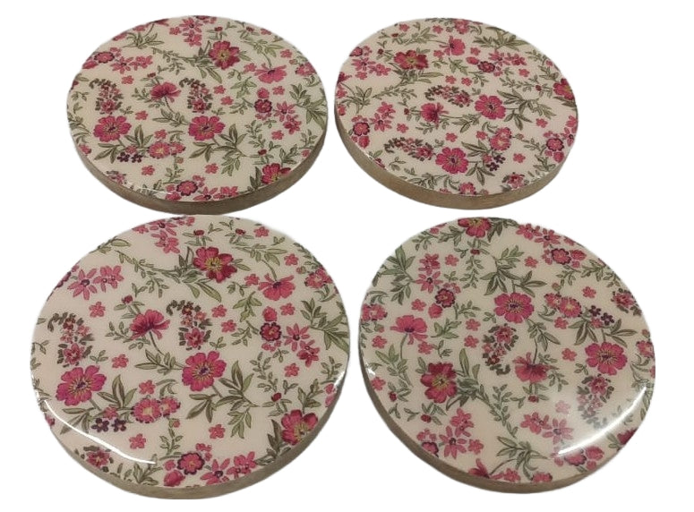 8020-07-0 VIER UNTERSETZER FÜR GLÄSER RUND MIT MOTIV BLUME