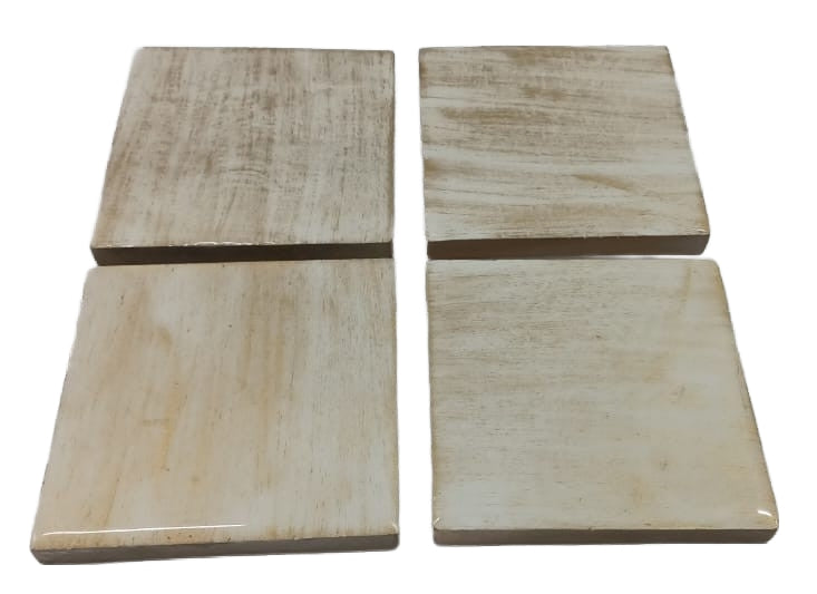 8021-06-0 VIER UNTERSETZER FÜR GLÄSER viereckig MIT MOTIV GOLD/WEISS