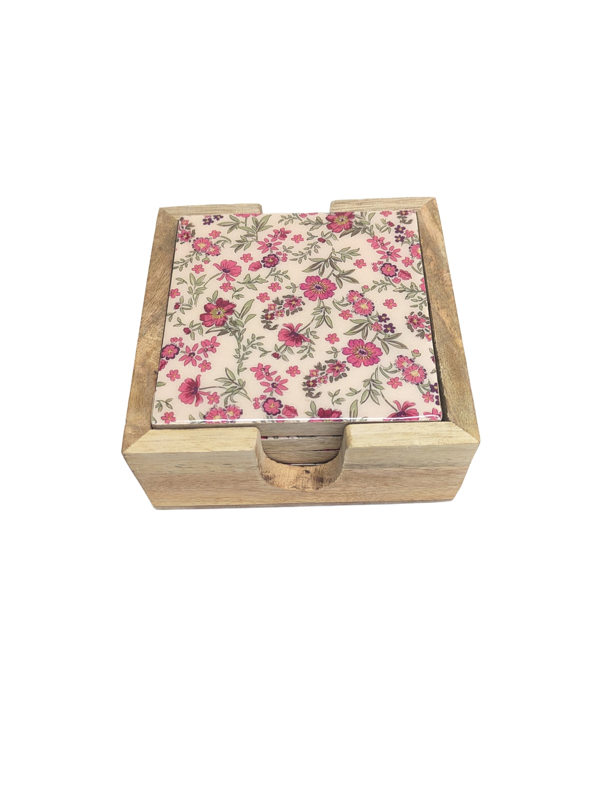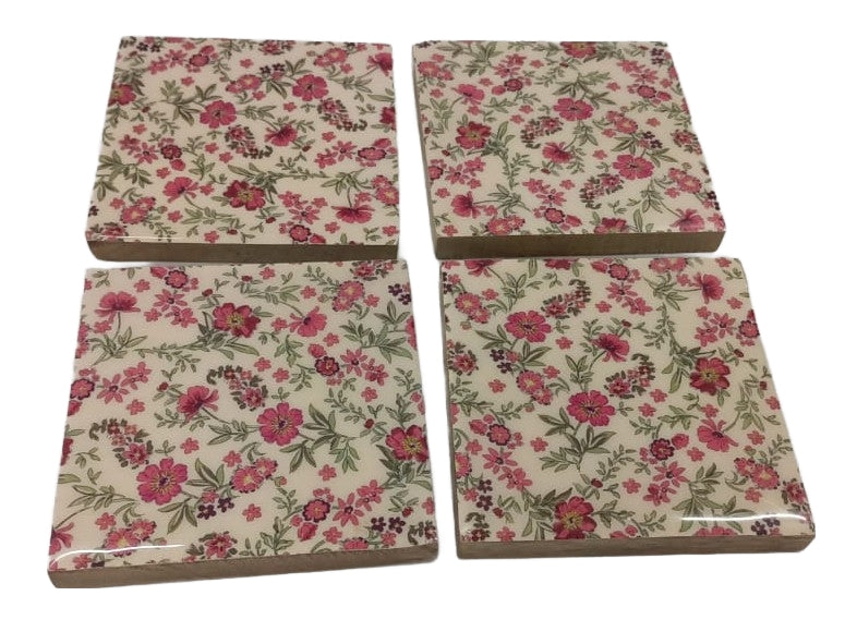 8021-07-0 VIER UNTERSETZER FÜR GLÄSER viereckig MIT MOTIV BLUME