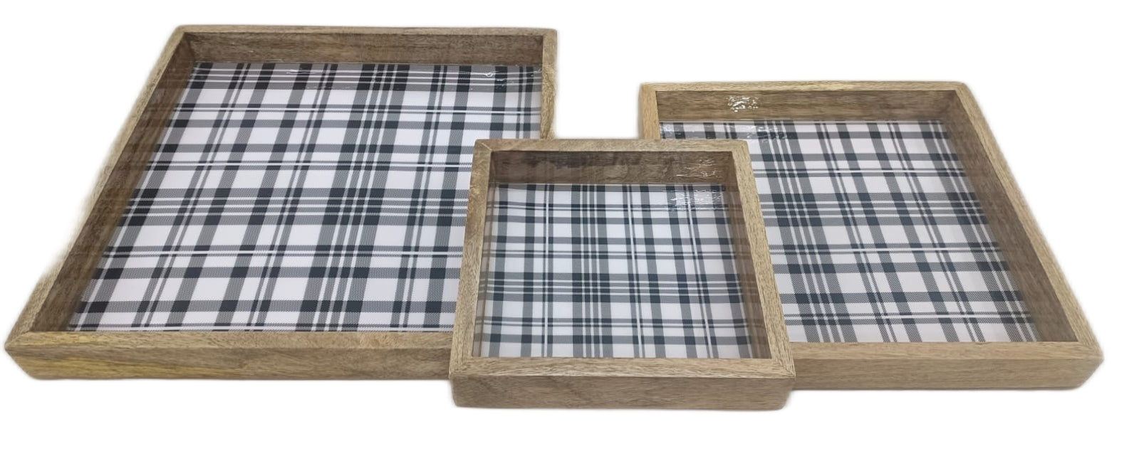 8026-03-0 HOLZSCHALE RECHTECKIG 1-3 KARO SCHWARZ/WEISS