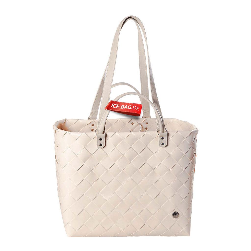 Alle ICE-BAG Shopper werden in Handarbeit aus robusten Kunststoffbändern geflochten, hauptsächlich aus Recycling-Kunststoff (100% PE, hoher Recycling-Anteil, ohne Weichmacher).